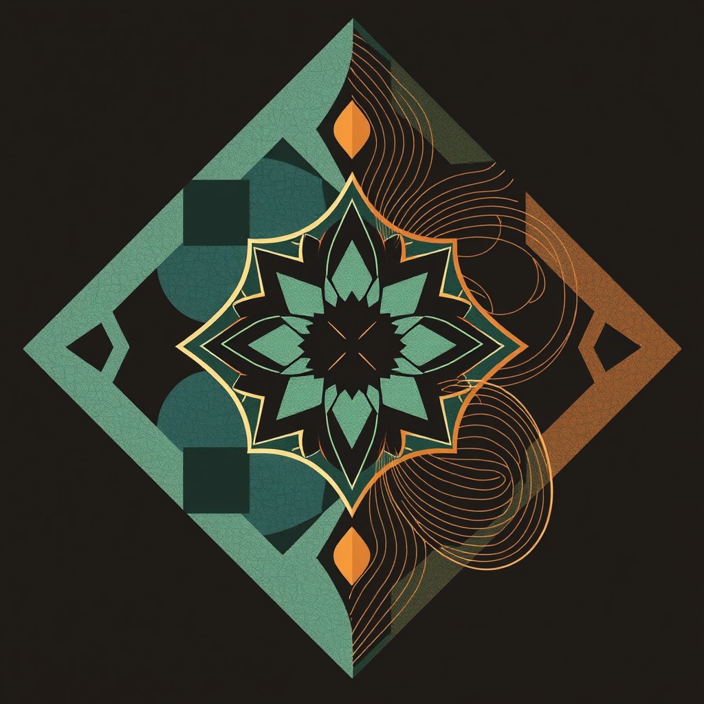 Indian stye An abstract illustration depicting transformation: from ordered geometric shapes to free organic lines.
