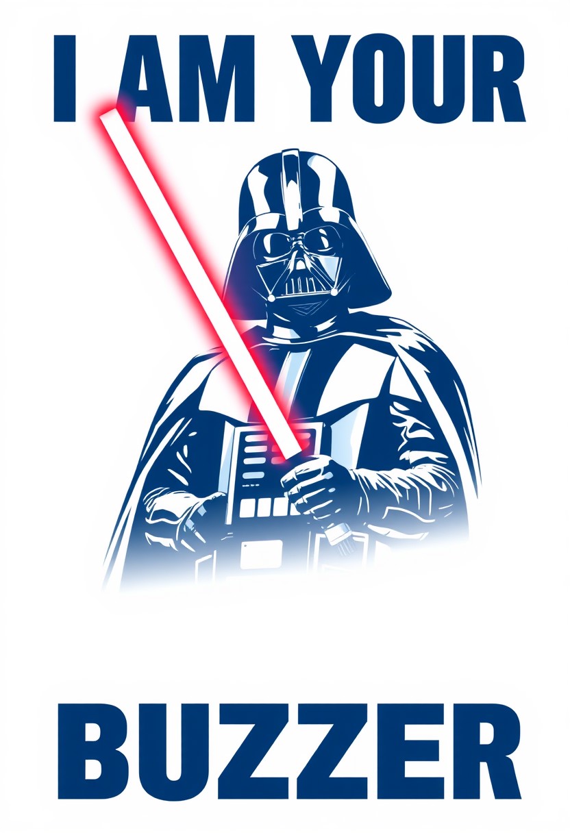 White and Blue poster of Darth Vader with a red lightsaber Poster "I am your Buzzer"
