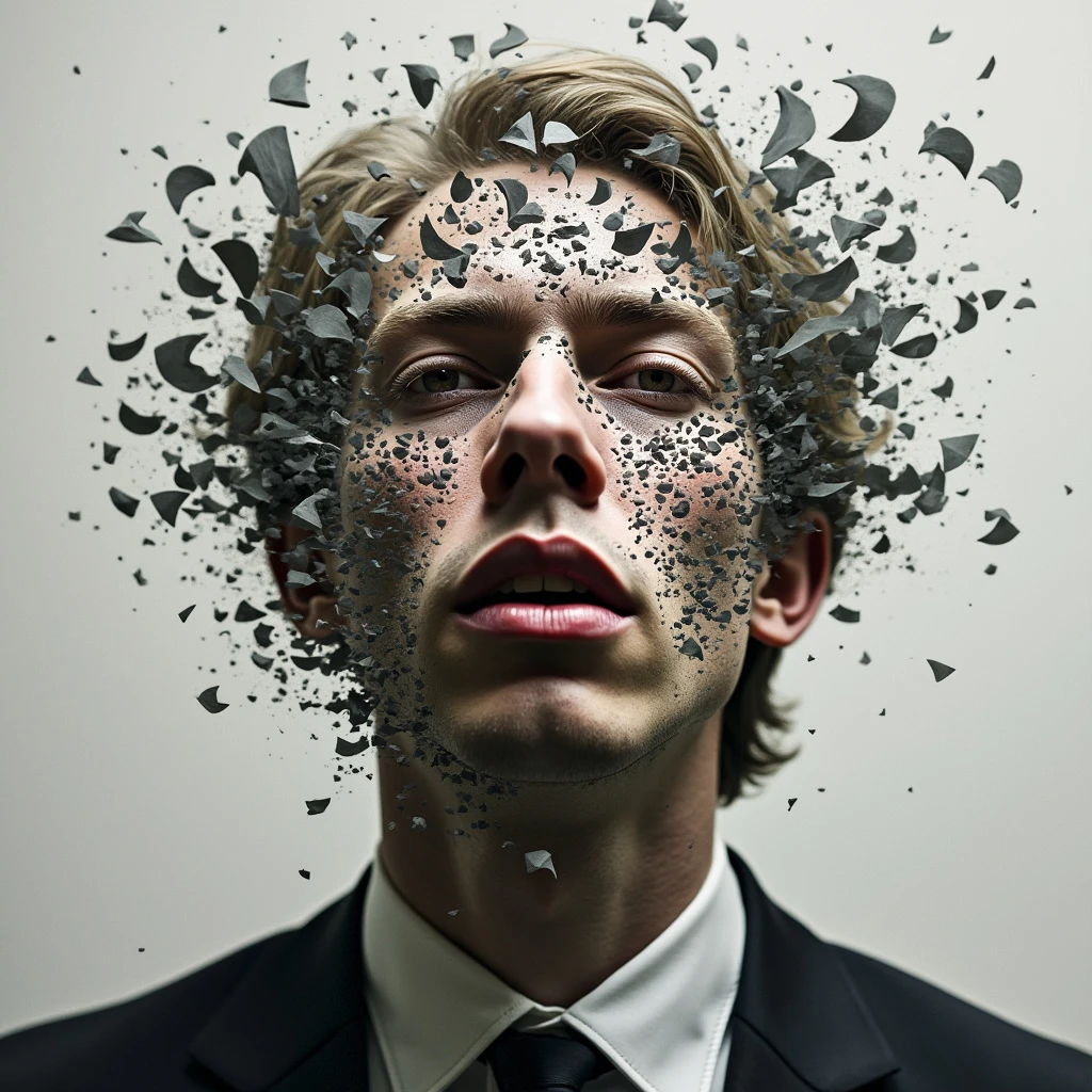 photograph of the masculine mind fragmented against the absurdities of the modern world
