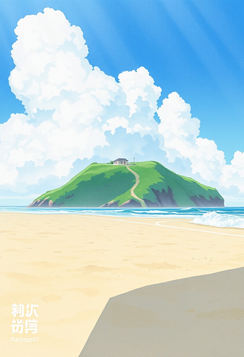 zPDXL3, rating_explicit, source_anime, masterpiece, high quality, BREAK <lora:age_slider_v4:4>,detailed_background,indoors,obanyaki,watercolor \(medium\),beach,traditional media,sand,cloudy sky,day,hill,no humans,morning,sky,absurdres,waves,landscape,sunlight,cloud,highres,painting \(medium\),shore,blue sky,shadow