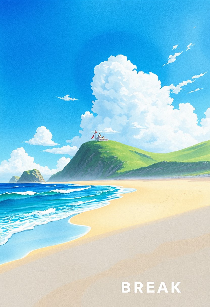 zPDXL3, rating_explicit, source_anime, masterpiece, high quality, BREAK <lora:age_slider_v4:4>,detailed_background,indoors,obanyaki,watercolor \(medium\),beach,traditional media,sand,cloudy sky,day,hill,no humans,morning,sky,absurdres,waves,landscape,sunlight,cloud,highres,painting \(medium\),shore,blue sky,shadow