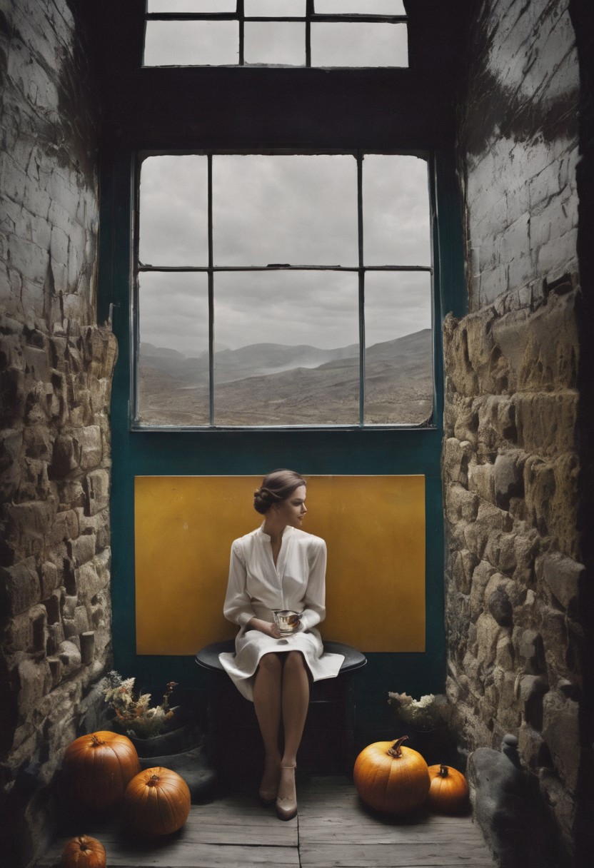 Time, (inspired by Lisette Model, Oleg Oprisco:1.4, blending candid photography with ethereal staged scenes) (intimate, raw portraits:1.3, deep emotional expressions, candid urban settings) (dream-like, whimsical compositions:1.2, surreal scenarios with vivid colors, oversized props) (contrast in styles:1.3, gritty black and white photos juxtaposed with vibrant, otherworldly landscapes) (elements of the unexpected:1.2, odd angles and perspectives, people in bizarre or dramatic poses) (artistic storytelling:1.3, narratives captured through a lens, blending reality with fantasy, symbolic elements)