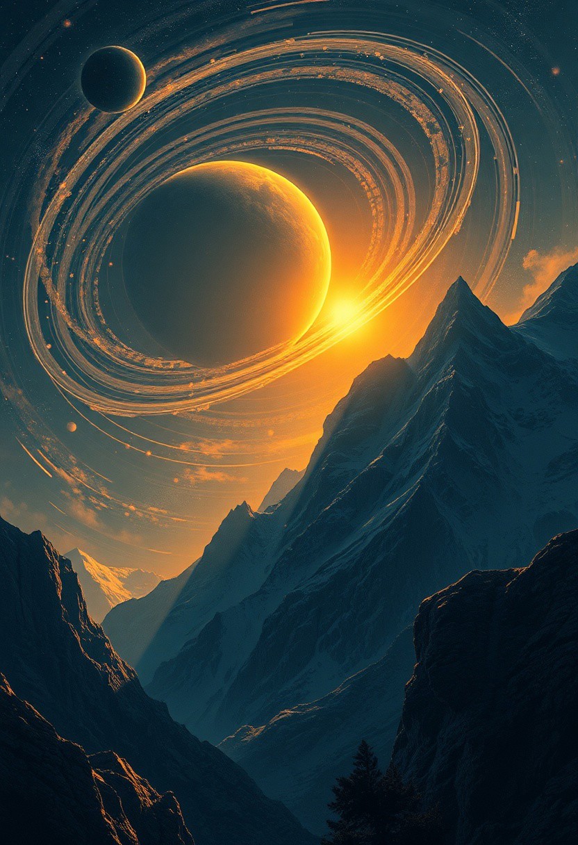 Planets whirl, suns are lit Mountains fly, stars are dimmed Its golden sabres tear through time
