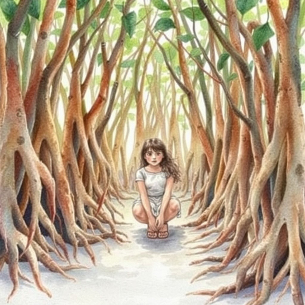 many-roots-on-the-ground-with-a-young-woman-under-them-high-quality-watercolor-4k-watercolor