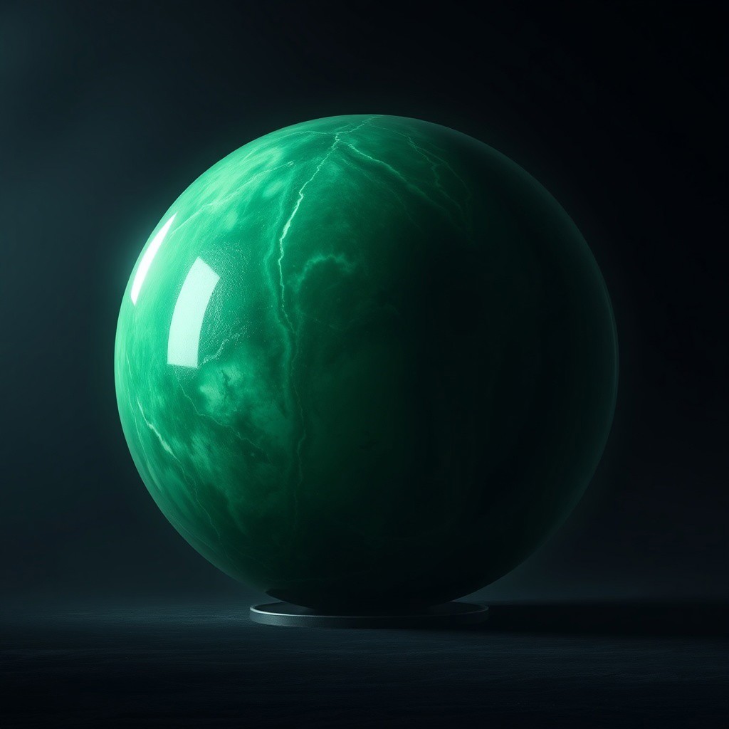 Huge jade orb with black glowing aura. Simple background, dark background, cinematic view, no more text