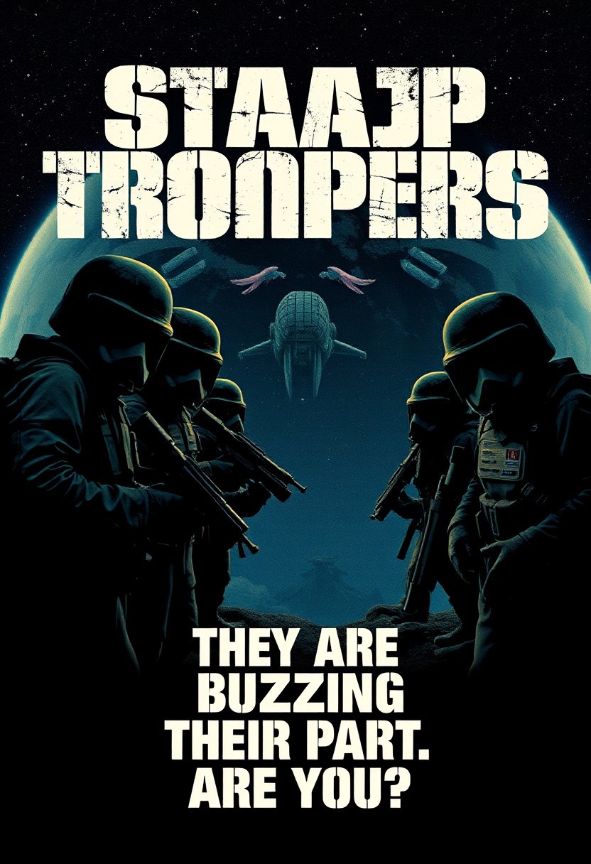 propaganda poster, starship troopers, paul verhoeven, inspiring, subtitled “THEY ARE BUZZING THEIR PART. ARE YOU?“