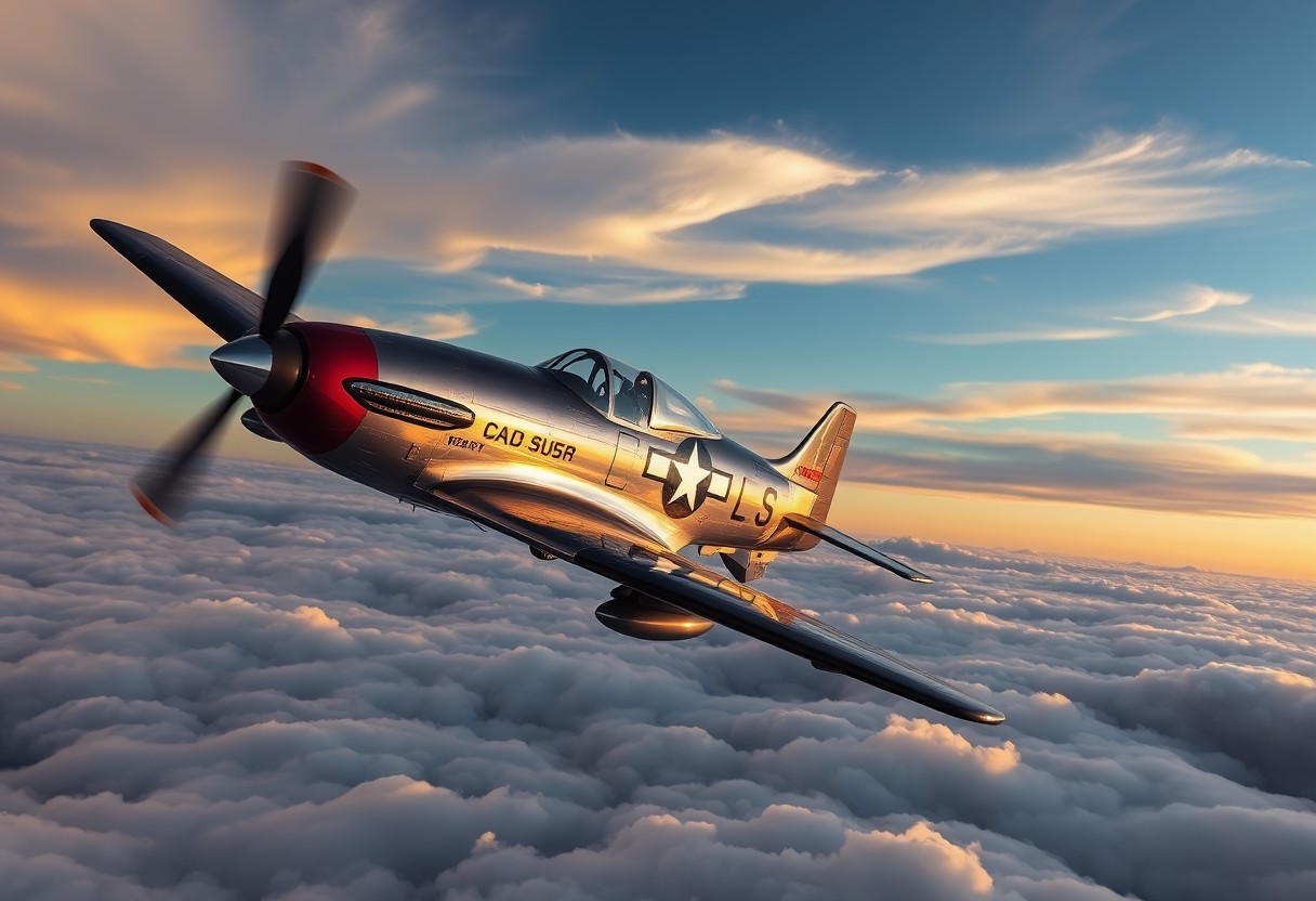 masterpiece, highres, best quality, high quality, highly detailed, upscale, clear image, sharp image, sharp focus, sharp lines, high definition, photograph, Vought F4U Corsair bf-109, flying over clouds, sunset