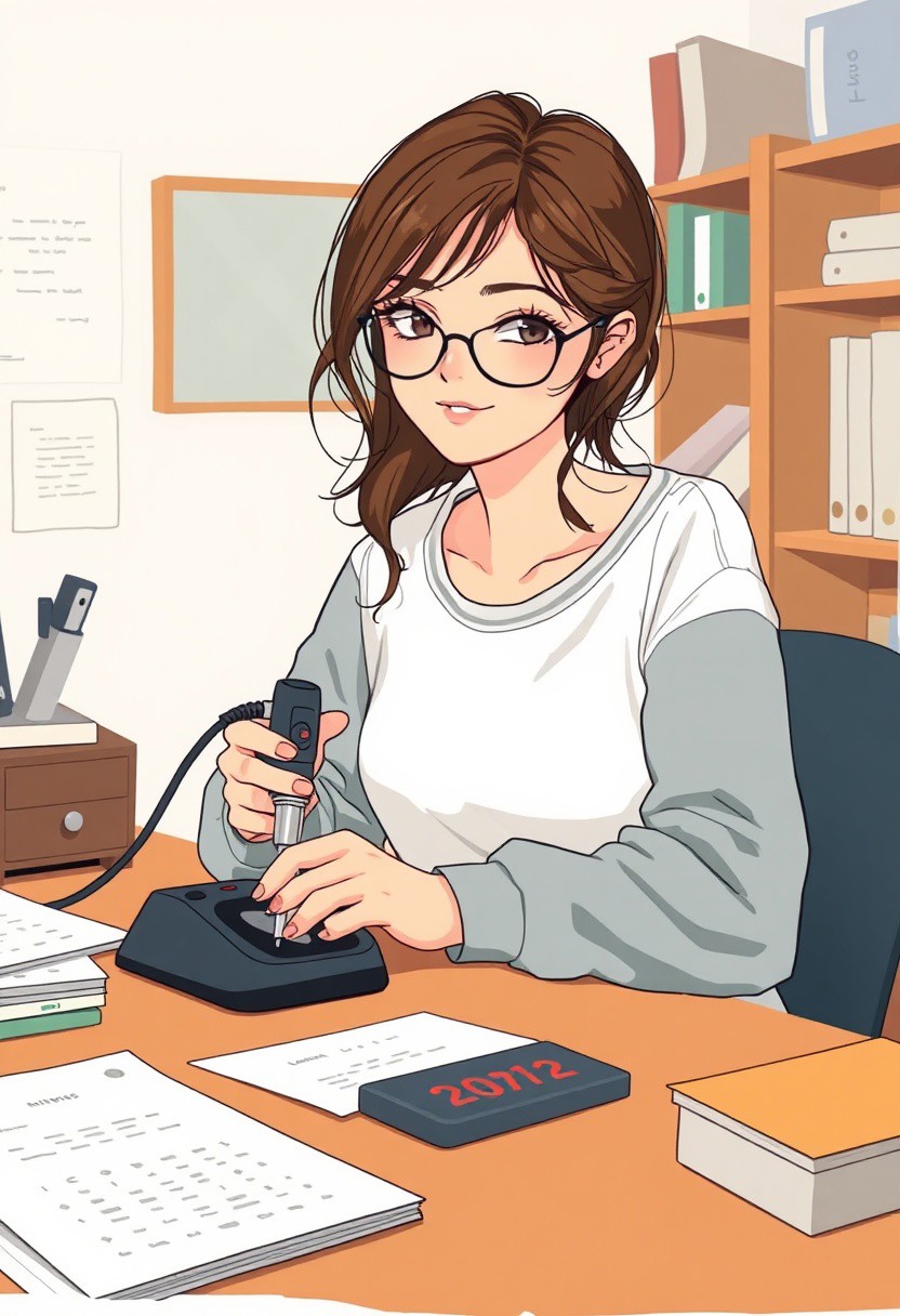 a 25yo girl using a soldering iron at a desk, student bedroom, strong minded, studious, geek, beautiful simple drawing, flat drawing, 2D, warm color palette, matte colors, natural lighting, realistic face