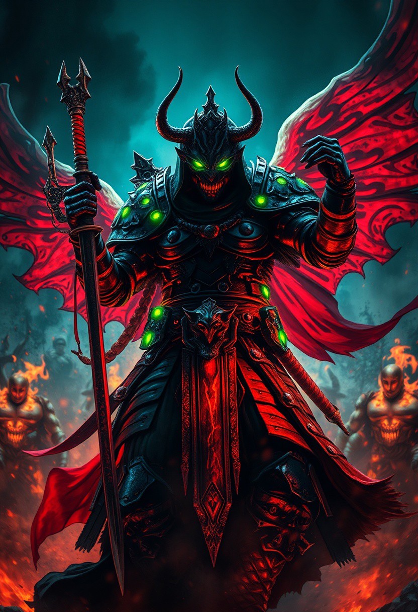 Epic dark fantasy vibrantly colored hyperdetailed ink art depicting a legendary warrior in defiance against impossible odds. Strong top lighting effect. Bioluminescent glowing armor and weapon accessories. Volumetric lighting. Chiaroscuro oil painting by Caravaggio. Deep glow effect, cinematic light bloom, cinematic lens flare. Grimdark, gritty, intense, volatile. Hypermaximalism. Motion blur. Full-frame fisheye lens. 32K cinematic hyperrealistic fantasy ultradetailed masterpiece.