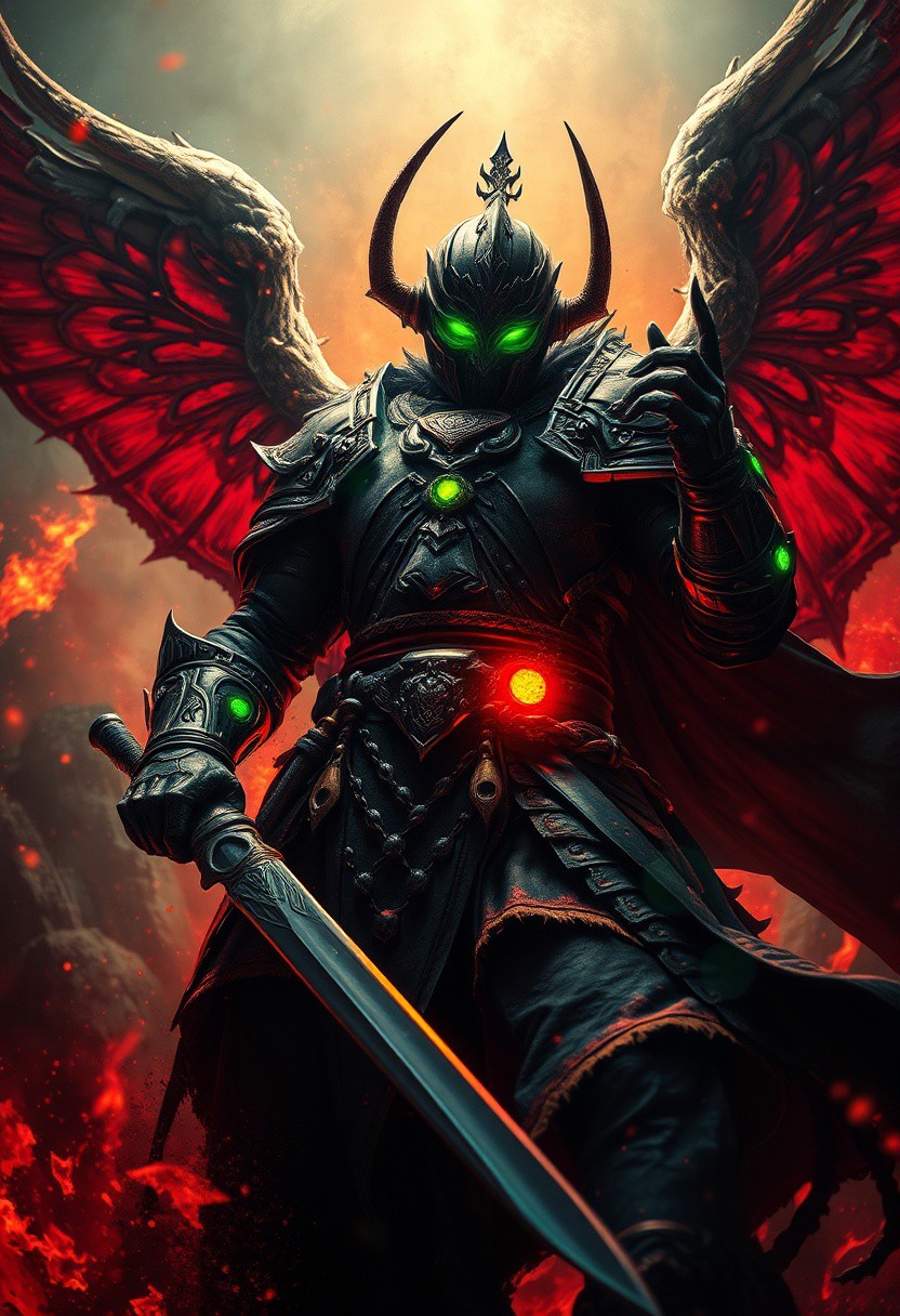 Epic dark fantasy vibrantly colored hyperdetailed ink art depicting a legendary warrior in defiance against impossible odds. Strong top lighting effect. Bioluminescent glowing armor and weapon accessories. Volumetric lighting. Chiaroscuro oil painting by Caravaggio. Deep glow effect, cinematic light bloom, cinematic lens flare. Grimdark, gritty, intense, volatile. Hypermaximalism. Motion blur. Full-frame fisheye lens. 32K cinematic hyperrealistic fantasy ultradetailed masterpiece.