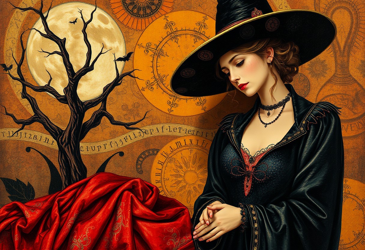 Something wicked this way comes, Style by Gustave Klimt and remedios Varo and Jocelyn Hobbie and Lee Bogle<lora:xl_more_art-full_v1:0.3>