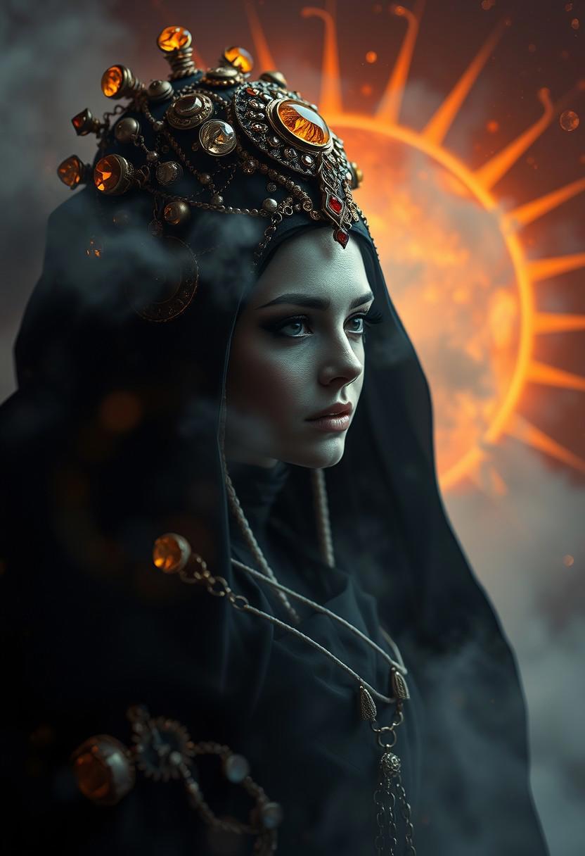 surrealist art cinematic film still Steampunk,, Luxurious Elegance, Glo-fi Art Style, Dark Fantasy Art, Macro Photography, Art Deco, gothic style masterpiece, a painting made of precious stones, , beautiful, realistic, 4k, professional photography, bright lighting, body aesthetics, high detail, shrouded in fog, Mysterious, masterpiece, best quality, high-resolution, medieval tale style, cozy style, doll house, Real estate photography style masterpiece, . Professional, inviting, well-lit, high-resolution, property-focused, commercial, highly detailed,,(in Karel Thole style:1.4), (masterpiece:1.2), (A female void walker, age 50, form flickering between existence and nothingness, eyes reflecting the infinite expanse of the void, clad in a swirling cloak of pure darkness and shadow, composed in an abstract cosmic style with black holes and collapsing stars, wearing unique Avant-garde masterpiece attire and headdress:1.1), (bathed in the intense heat of the suns corona, set against the backdrop of the darkest depths of the ocean where sunlight never reaches and bioluminescent creatures illuminate the abyss:1.1), (hyperdetailed:1.1), (intricate details:1.0), (Refined details:1.1), (best quality:1.1), (very stylish detailed modern haircut, mesmerizing detailed radiant face, mesmerizing detailed beautiful eyes:1.2) <lora:epi_noiseoffset2:1>, <lora:sharp_eyes:1>, FLUX 🌟FaeTastic Details, utopia, alisa seleznyova