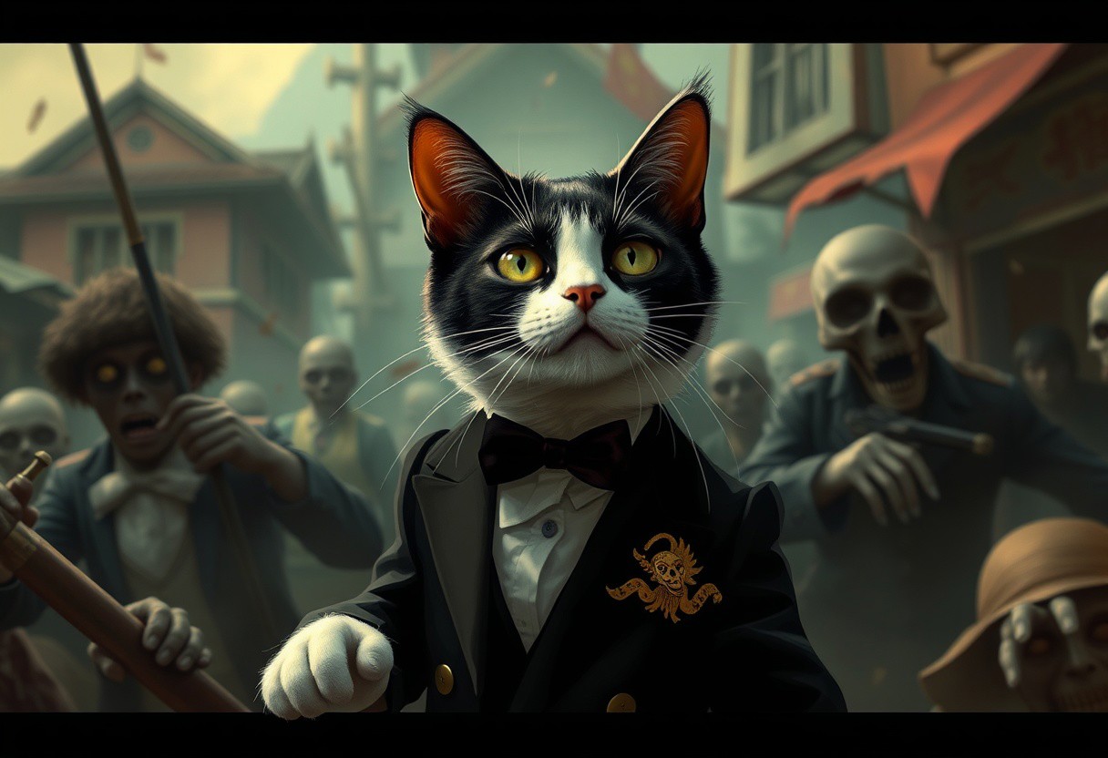 In the heart of the chaotic French Indochinese Revolution, a tuxedo cat named Cole leads a brave squad of time-traveling felines. These extraordinary cats possess the ability to slip through time and space, aiming to restore the historical timeline that threatens to collapse into a zombie apocalypse. As they leap through the years, Cole discovers that an evil sorcerer, once a human turned undead by his insatiable lust for power, has unleashed a plague of the undead on the rebels. With the fate of history hanging in the balance, Cole and his squad gather allies from the past, including a feisty Vietnamese farmer and a revolutionary poet. Together, they must confront the sorcerer and his horde, armed only with their courage and a bag of enchanted catnip. Just as victory seems within reach, a shocking twist unfolds: the sorcerer was Cole's long-lost feline ancestor, ensnared by the very power he sought to control. In a race against time, Cole must reconcile his past to save the future, uniting both man and cat against the rising tide of darkness.