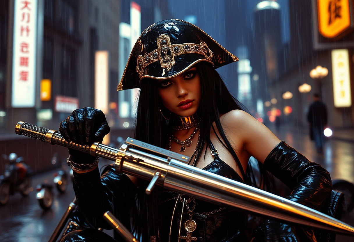 Private Pirate magazine fetish style modelshoot , 1993 ,bladerunner , robert T , techno style, chrome and gold , rain