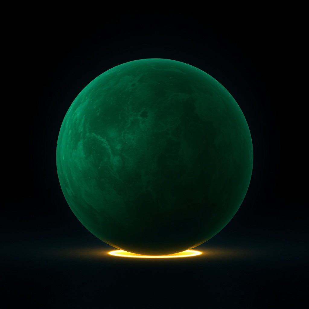 Huge jade orb with black glowing aura. Simple background, dark background, cinematic view, no more text