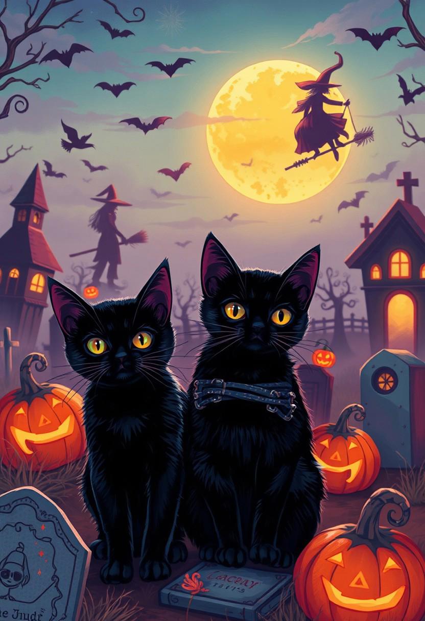 professional, high quality, super cute, kawaii, 8k, adorable<lora:EnvyStarlightBodySketch01:1(realistic:1.2),HDR,UHD,8K,armcrossedMechanicallimbs<lora:Mechanical_limbs_LyCORIS:1> - Halloween wallpaper,retro style,black cats with arched backs,creepy graveyards,old-fashioned jack-o'-lanterns,witches on broomsticks flying through a colorful sunset,soft pastel hues blending with dark tones;4k resolution,digital painting,artstation,playful yet eerie atmosphere Modifiers: 4k digital masterpiece by Anna dittman and Ruan Jia and Alberto seveso чрезвычайно детализированное фэнтези, замысловатое, с высокой детализацией, отмеченное наградами красочное, жутковатое трехмерное правило третей, изображения Джозефин Уолл, Алекса Алемани, Брайана Фрауда, Тома Бэгшоу, Ди Никерсон Хендри