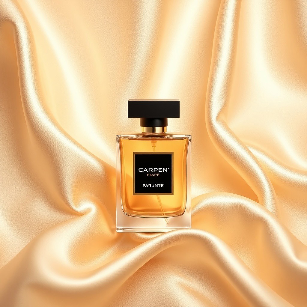 Elegant and modern perfume ad with a silk texture background,PFproduct