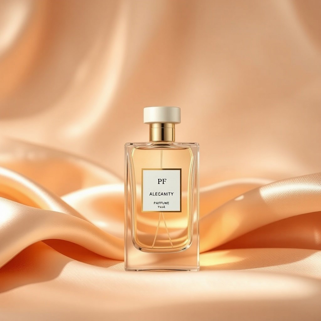 Elegant and modern perfume ad with a silk texture background,PFproduct