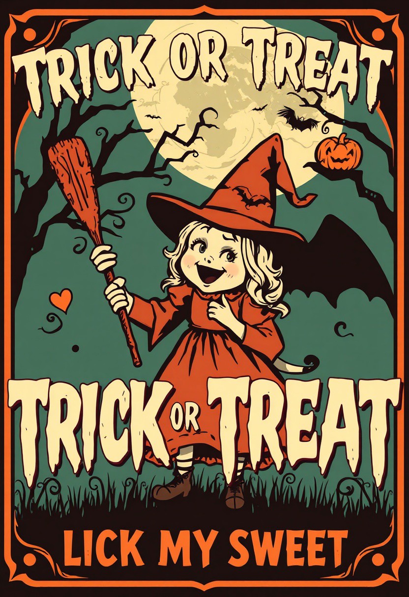 "TRICK OR TREAT LICK MY SWEET" Vintage poster design, retro