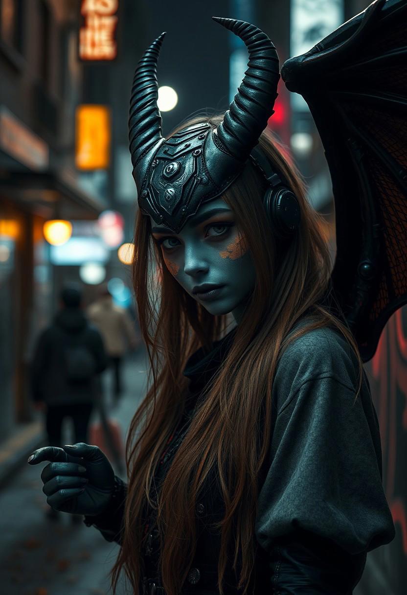 madness bio droid, night street, down town, graffity maker, demon wings, noir art style,, gothic style, Depth of field, autumn, leaf fall, (8k, RAW photo, best quality, depth of field, ultra high res:1.2), (intricate, photorealistic, masterpiece, ultra-detailed), dynamic lighting , masterpiece, portrait of a neural network lady painter, with the artist's autograph, calligraphic handwriting , who paints her self-portrait on ice canvas in the studio, hopefull, beauty, slavic, realistic, long hair, sharp eyes, ( full body), UHD, sRTX, 8K,high perspective full body shot, score_9, score_8_up, score_7_up, (best quality:1.1),ultra-detailed, high resolution, super detailed , realistic new model, cinematic, hyperrealistic, subtle hints of galaxies and stars, space-themed wallpaper for PC, ultra HD, realistic with vivid colors, highly detailed UHD with a perfect composition that highlights a beautiful and intricate octane render, 8k resolution, artistic photography, cinematic lighting.i¼ , cyborg, mechanical parts,, glowing