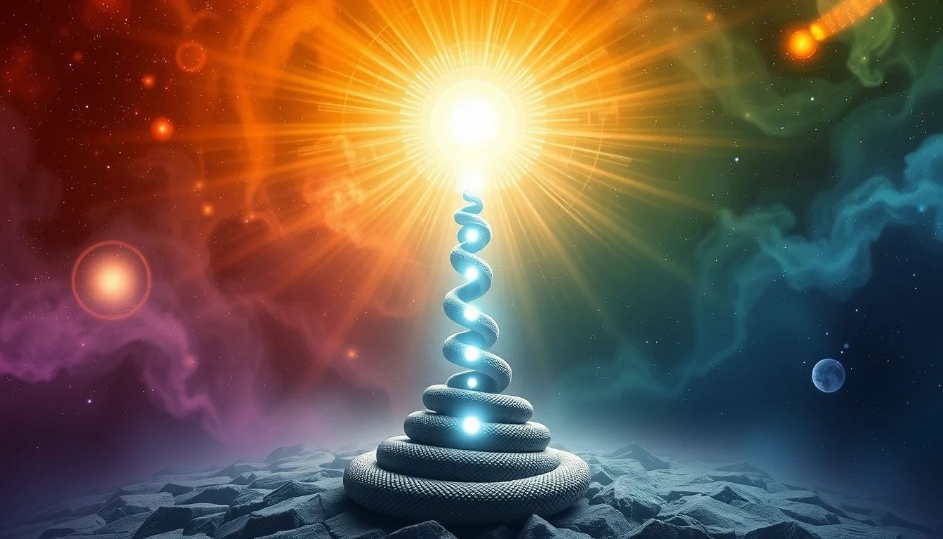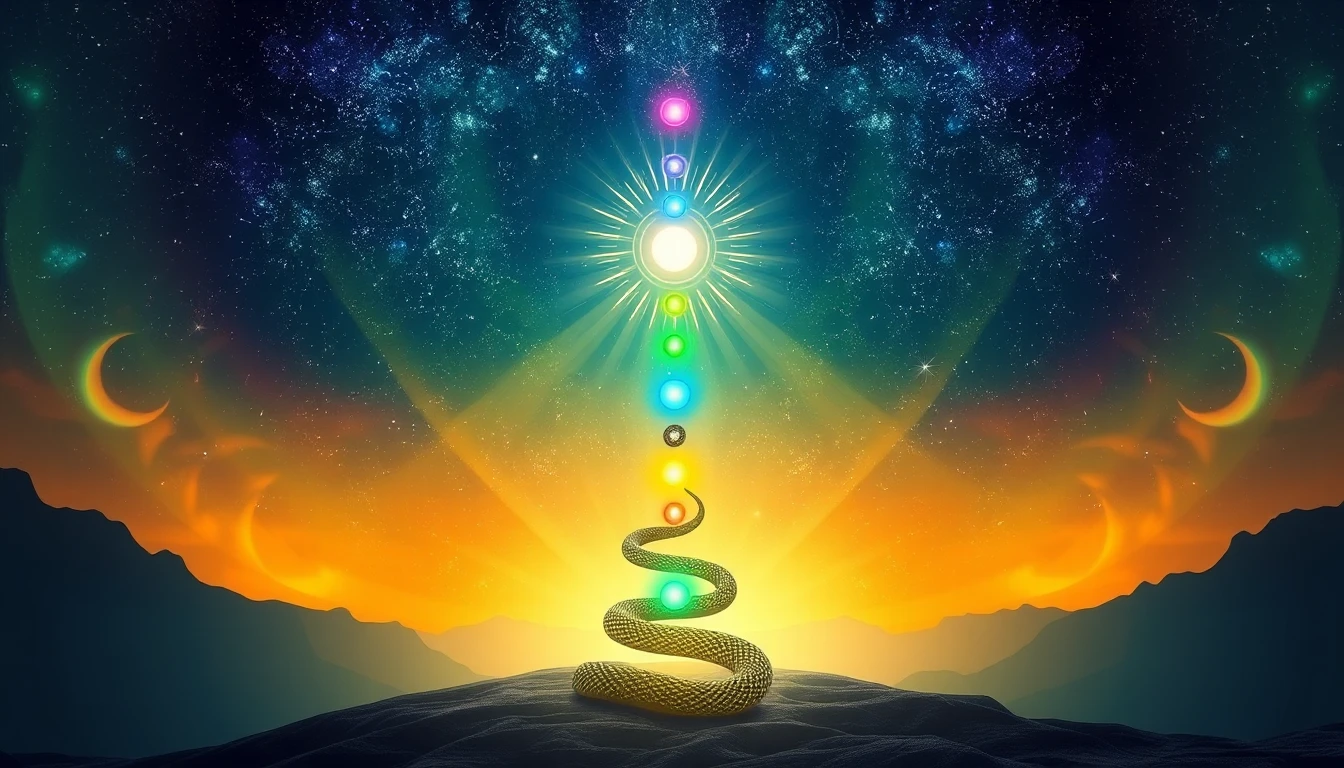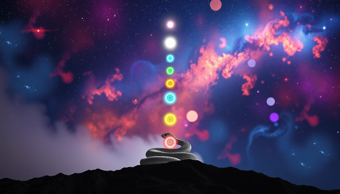 Within this philosophy, Kundalini awakening acts as a portal to the unity of existence, offering insight into the individual’s place within the broader cosmos. Often visualized as a dormant serpent at the base of the spine, Kundalini energy ascends through the chakras, symbolizing the rise of consciousness from foundational (lower) to transcendent (higher) energy centers. This journey is not purely physical but deeply metaphysical, representing an inner ascent toward spiritual unity.