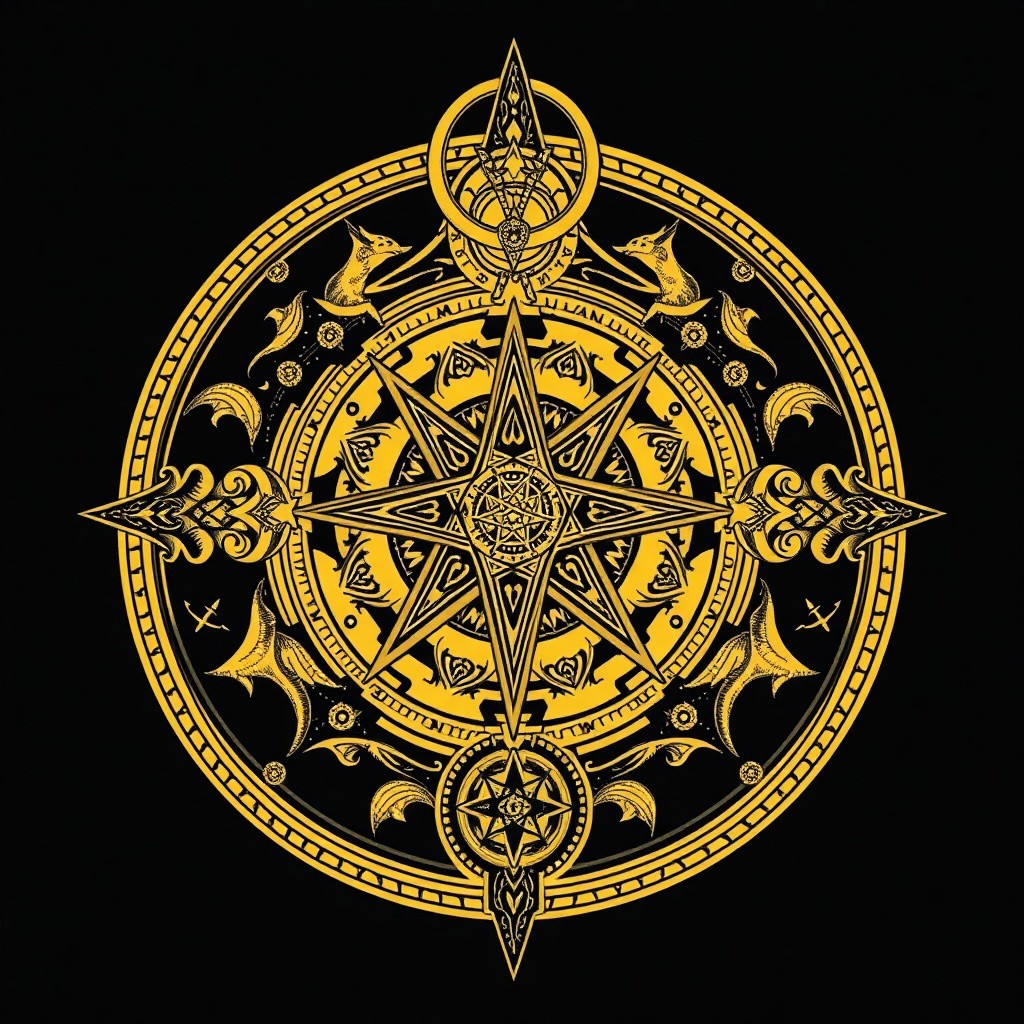 tattoo design, intricate occult symbolism, esoteric, golden dawn, thelema, chaos magick