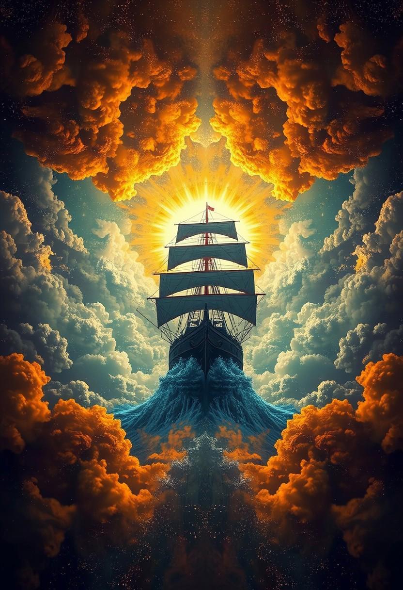 ship, storm, sun, white, yellow, centered, symmetry, painted, intricate, volumetric lighting, beautiful, rich deep colors masterpiece, sharp focus, ultra detailed, in the style of dan mumford and marc simonetti, astrophotography<lora:xl_more_art-full_v1:0.3>
