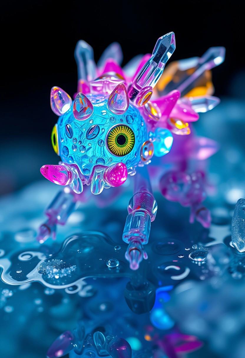 Mythical glowing Cute creature Body made of colorful crystal,Alien Flora, water hydroforming, terraforming. Alien Flora, Miki Asai Macro photography, close-up, Miki Asai’s visual style is ethereal and dreamlike, capturing the beauty of nature in a delicate and poetic way, hyper detailed, trending on artstation, fantastic Realism and Sharp Focus, studio photo, intricate details, highly detailed, by greg rutkowski detailed face, detailed skin, reflection