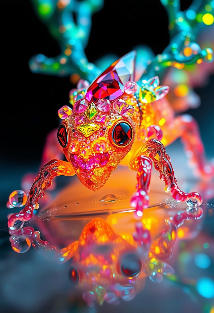 Prismatic creature body made of glowing colorful gems and crystal,Alien Flora, water hydroforming, terraforming. Alien Flora, Miki Asai Macro photography, close-up, Miki Asai’s visual style is ethereal and dreamlike, capturing the beauty of nature in a delicate and poetic way, hyper detailed, trending on artstation, fantastic Realism and Sharp Focus, studio photo, intricate details, highly detailed, by greg rutkowski detailed face, detailed skin, reflection
