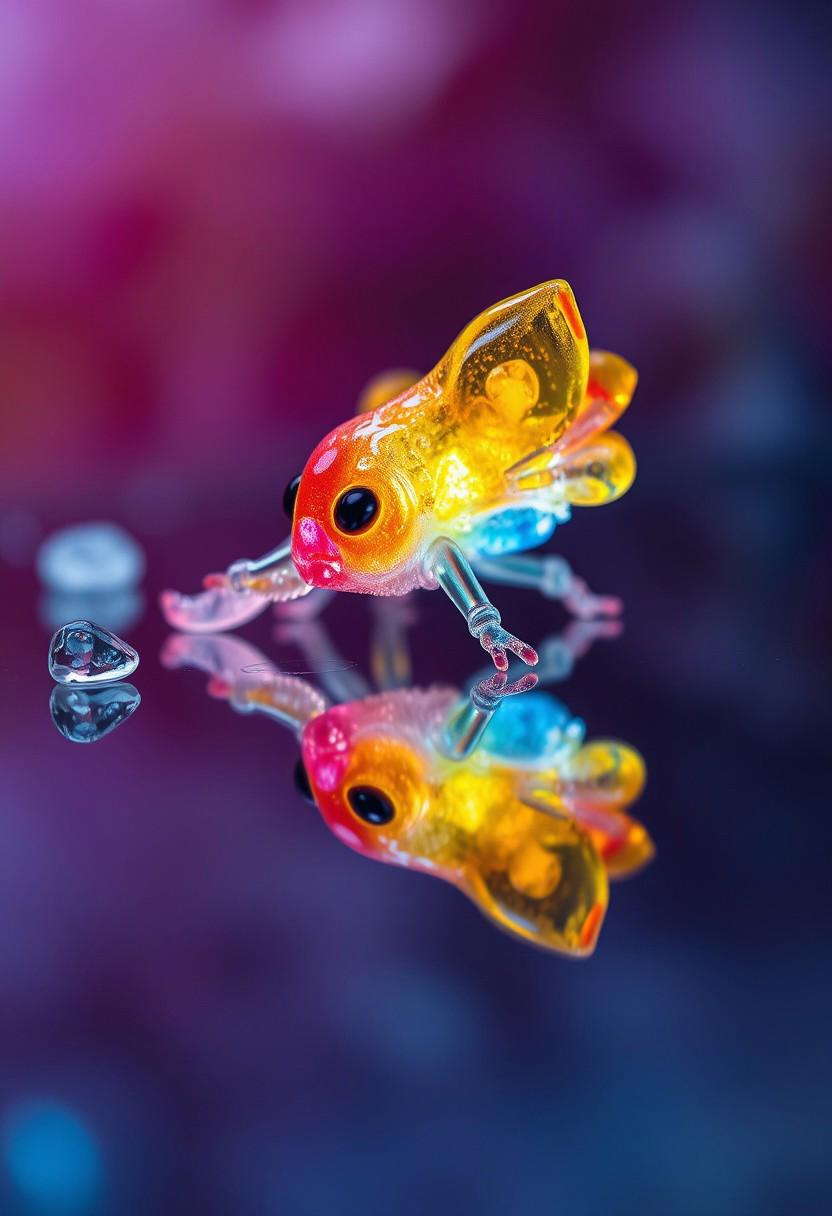 Mythical glowing Cute creature Body made of colorful crystal,Alien Flora, water hydroforming, terraforming. Alien Flora, Miki Asai Macro photography, close-up, Miki Asai’s visual style is ethereal and dreamlike, capturing the beauty of nature in a delicate and poetic way, hyper detailed, trending on artstation, fantastic Realism and Sharp Focus, studio photo, intricate details, highly detailed, by greg rutkowski detailed face, detailed skin, reflection