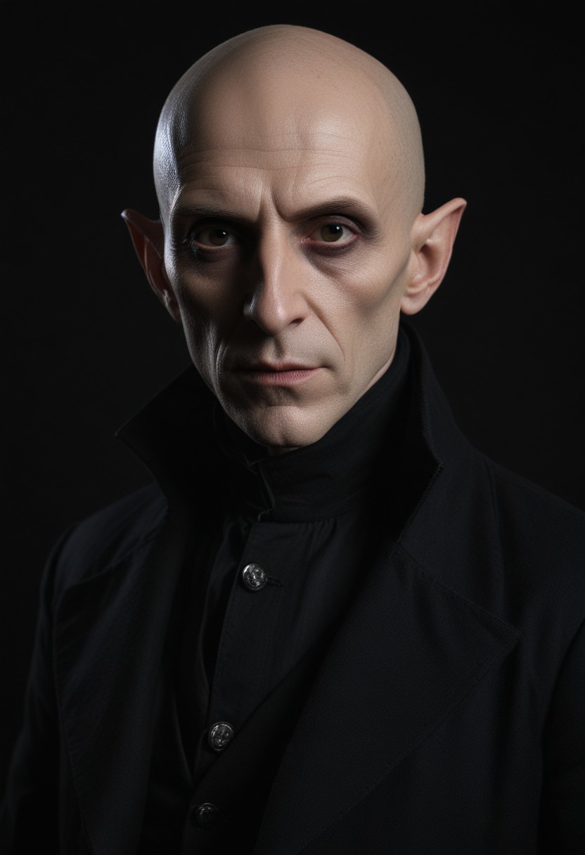 <lora:18th_Century_man_V0-000018:0.8> w16hsl1ps, Nosferatu the vampire, professional studio quality modeling headshot, 4K, historical wig, (simple black background:1.2), dramatic lighting, ultra realistic photograph, professional art, (black coat)