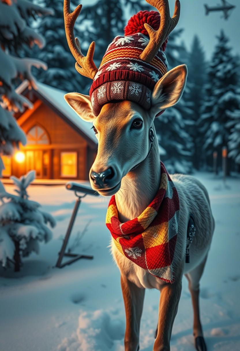 cybernetic robot, cybernetic style, sci-fi style, masterpiece, score_9, score_8_up, score_7_up, dark gothic, noir, (best quality:1.1),ultra-detailed, high resolution, super detailed , cinematic, hyperrealistic,Fashion-forward x-mass Rudolph the deer, double exposure effect, frosty winter landscape, playful stance, fluffy coat of snow-white fur, bright hazel eyes, adorned with a striped wool scarf, vibrant red and yellow patterns, quirky, oversized beanie with snowflake motifs, blending beautifully against snow-covered pine trees, reflections of a cozy cabin in the background, warm glowing light, whimsical atmosphere, hint of surrealism, by Claude Monet and Yayoi Kusama, 8K resolution..., <lora:epi_noiseoffset2:1> , <lora:EnvyDramaticLightingXL02_photo:1> ,<lora:Ultima_Flux_v1:0,5>, <lora:SDXLFaeTastic2400:1>, <lora:EnvyInfernal01-sd15-dowg-trigger-const:1>, <lora:envyStarlightScifi_v10:1> , futuristic, technological, alien worlds, space themes, advanced civilizations, lens flare ,