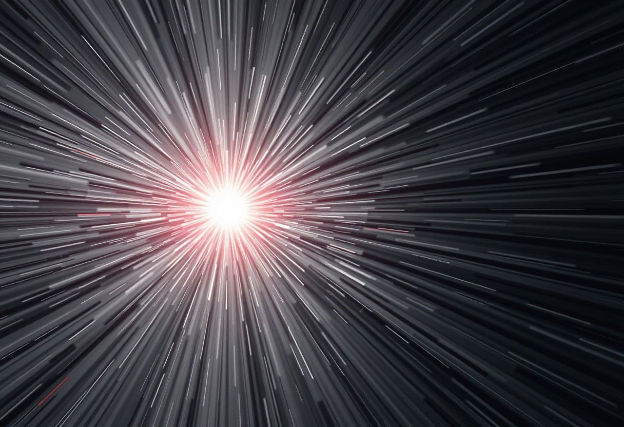High speed grey and silver laser beam with shockwaves ricocheting off invisible silver forcefield. Chrome shockwave circles radiate from impact point