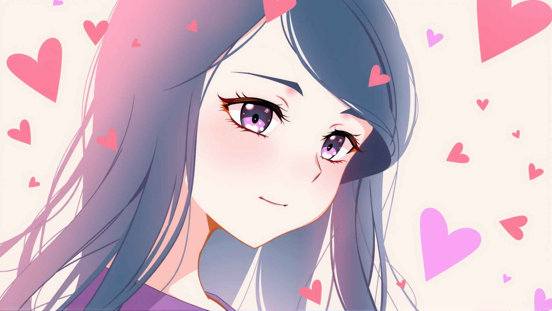 (an anime portrait rendered in soft pastel chalk style, a serene young woman with gentle wind-blown hair), velvety color transitions, delicate shading, subtle texture of chalk dust, soothing palette of gentle blues and pinks, flux style, perfect wallpaper composition