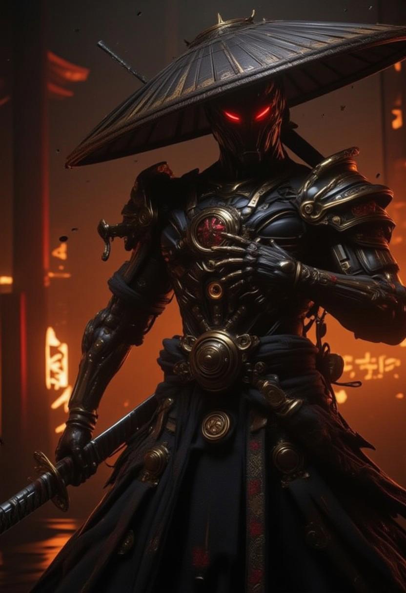 1 man ,fire Samurai, macro, a captivating vibrant dark capturing the essence of a cyborg Bedouin sorcerer in fight stance, Fist raised infront of japanese shire. ethereal, smoky backdrop. throwing a translucent amber/black, atmospheric haze, Film grain, cinematic film still, shallow depth of field, highly detailed, high budget, cinemascope, moody, epic, OverallDetail, gorgeous, 2000s vintage RAW photo, photorealistic, candid camera, color graded cinematic, eye catchlights, fire world