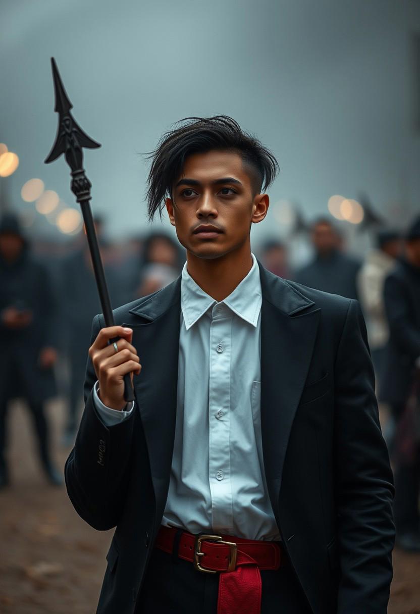 (photography, realistic:1.4), fashion photography, Stand up to oppression. Stand up to the tyrant! Depth of field, masterpiece., . full body. An otherworldly atmosphere, Mysticism. nigiex. . (Depth of field), low saturation,detail. mythp0rt Stylish, charismatic. (depth of field) mythp0rt, nigiex.