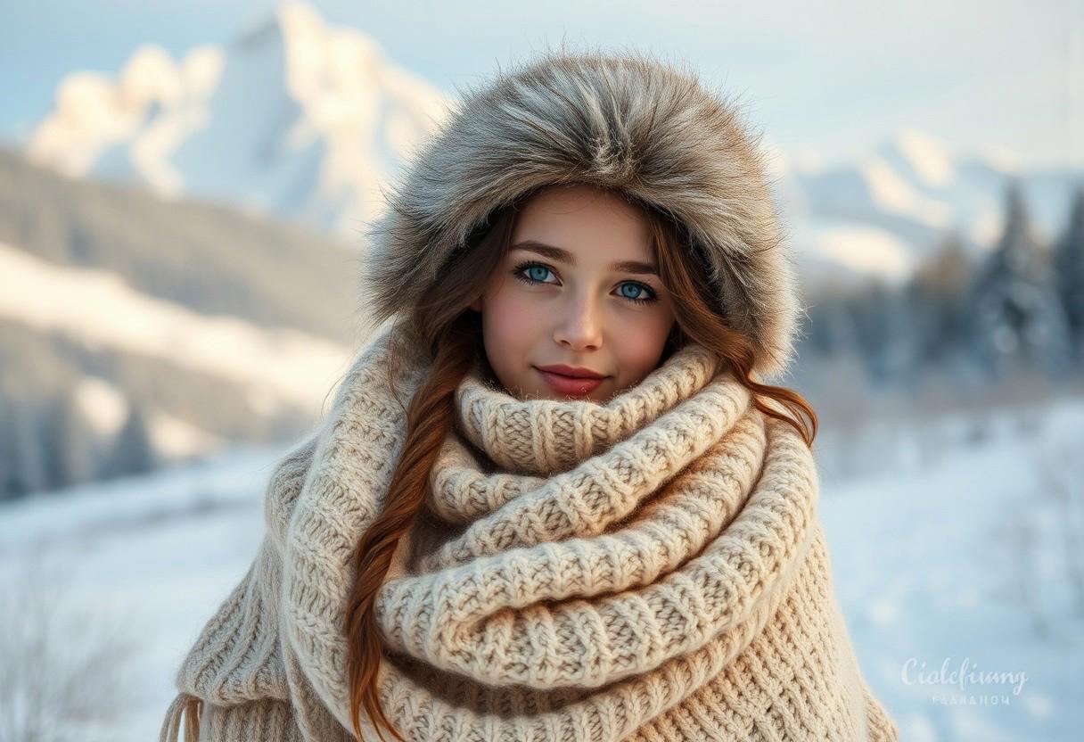 Мечтательный, волшебный образ в стиле Джозефин Уолл, Ивоны Лифшес и Меган Дункансон, изображающий женскую фигуру, стоящую с распущенными длинными волосами на фоне заснеженного зимнего пейзажа. Заснеженные сосны, сосульки, две белые лисицы у ее ног. На заднем плане красивые высокие горы. На ней красивое голубое пальто из шелка и атласа с длинными рукавами. На голове капюшон с меховой подкладкой, из-под которого каскадом ниспадают длинные темные волосы. В руках она держит хрустальное сердечко. Классические черты лица, красивое, безмятежное. Прекрасное небо над ней, в мягких оттенках персикового и розового. Драматичный, романтичный, красивый, мечтательный, величественный. Модификаторы: высокодетализированная элегантная замысловатая красавица-импрессионистка Джозефина Уолл, переливающаяся Ивона Лифшес, Меган Дункансон смешанная техника: акварель, пастель, масло @Morgana Stellaris высокодетализированная, очень детализированная, красивая элегантная замысловатая, идеально пропорциональная структура лица, мечтательный, потусторонний эффект, высокодетализированные анатомически сбалансированные и реалистичные черты, замысловатая элегантная одежда, Очаровательное, волшебное, неземное классическое лицо и черты лица