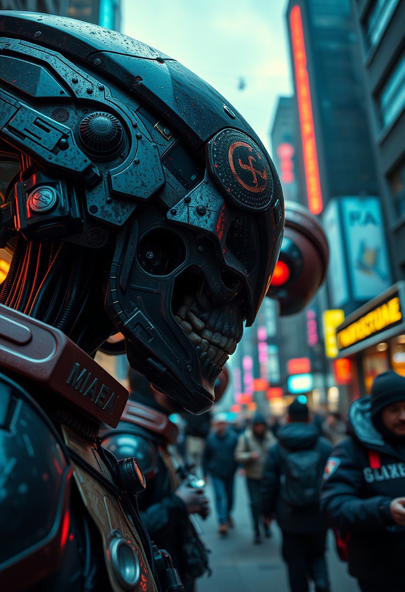 A candid street photography close-up shot depicting a macabre dark fantasy science fiction scene with futuristic themes, cosmic landscapes, vibrant colors, dynamic composition, advanced technology, space exploration, alien worlds, and detailed starships. The image should feature detailed focus and spontaneous candid moments in urban scenes.