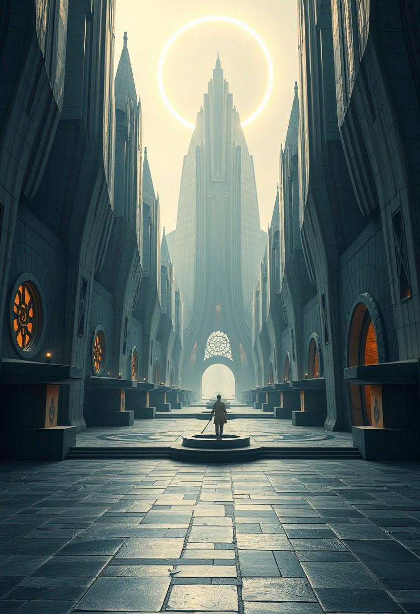 HD DSLR Misty eclipse cinematic still, science fiction Celtic futuristic architectural city of sleek alienesque design, Celtic society, latex-laminate construction materials