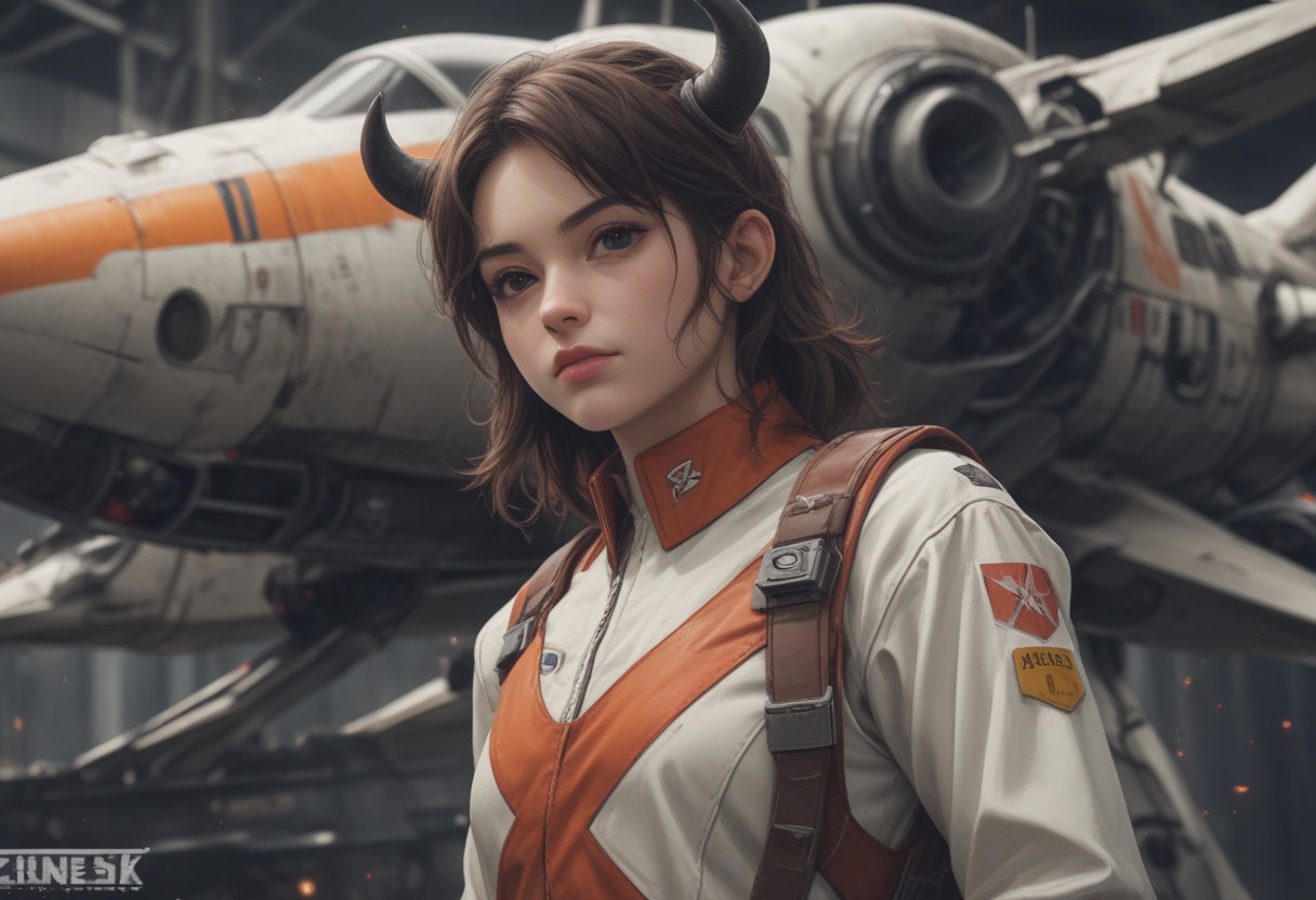 Create a hyper-realistic artwork with a close-up of an action general uniform on a time machine background. Incorporate elements inspired by Mikecow, with an orange and white color scheme reminiscent of post-punk aesthetics. The uniform should be designed in the style of General Uniform, inspired by Glen Angus, and feature a large, distinctive moustache. In the background, include an X-wing and a flying cow, as seen in the works of An Gyeon. Ensure the artwork is a full product shot with a zineisk and hyper-realistic style, utilizing Octane render and depth of field. Apply a 35mm film grain effect and aim for an 8k resolution. Trending on Artstation, this artwork should also be artgem-worthy.