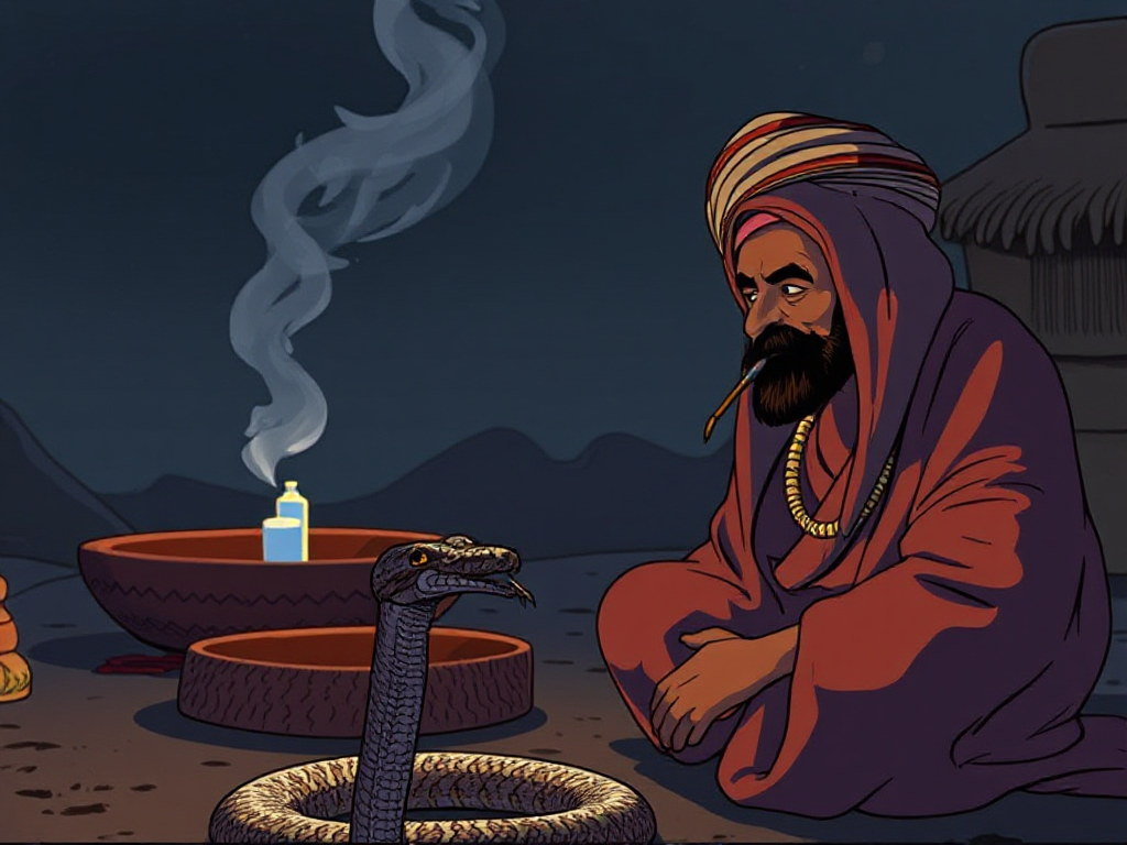 an animation cell from a 2000AD movie of a Moroccan snake charmer