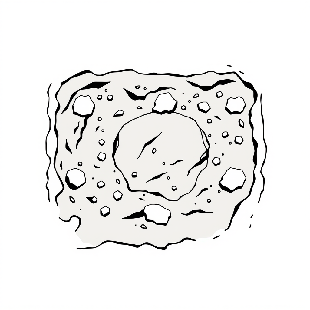 a overhead view of a piece of flat dirt, in a black and white lineart style as a tile from a video game tileset, viewed directly from overhead, flat 2D minimalist style, black and white monochrome color pallete, The overall design is square in shape