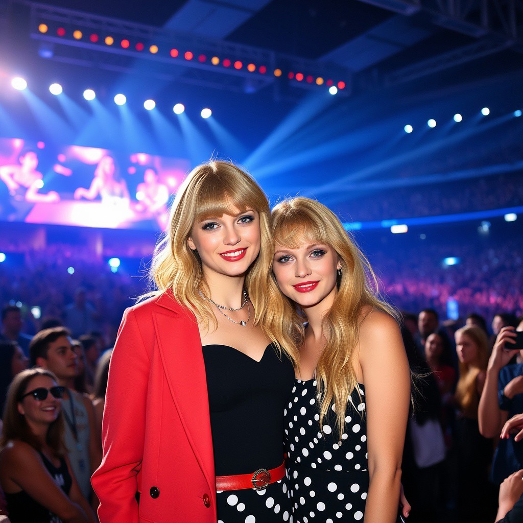 young woman at a swift concert, she is dressed just like taylor