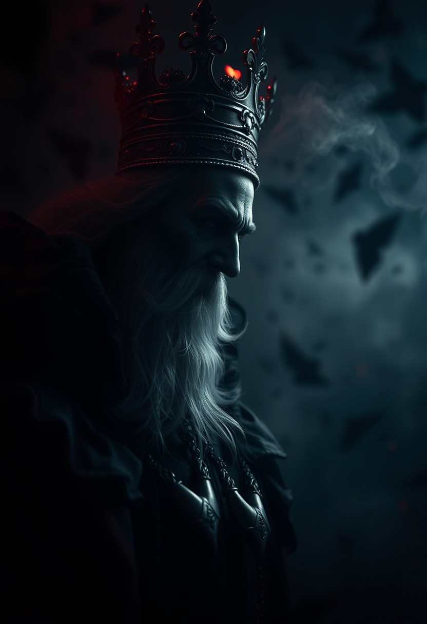 Close up shot of The King of Hearts, dark environment, gothic style, mist,