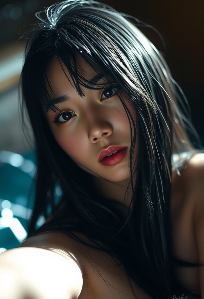 score_9, score_8_up, score_7_up, black hair, shiny skin, wet skin, eye contact, tilted angle, moody lighting, flouting, suggestive pose, perfect quality, (abstract:0.2) <lora:MythAnim3Style:0.9> MythAn1m3, asian face, (Korean)(black eyes) (masterpiece:1.4), (best quality:1.2) <lora:RMSDXL_Enhance: 0@0, 4@5 > <lora:Add_more_details_pony: 0@0, 1@5 > <lora:hd_4k_ntc: 0@0, 1@5 > (Depth of field), masterpiece, high resolution, cinematic, (bright lighting), <lora:S1_Dramatic_Lighting_v2:0.15> <lora:g4n1m3XLP:0.8> <lora:d3t41l3dXLP:0.5> ,gorgeous:4,detailed <lora:surrealidescent_v1:3.14> <lora:flux dtmh:3.14> <lora:Hand v2:3.14>, cleavage, cameltoe, pussy juices, huge saggy breasts, (score_9, score_8_up, score_7_up,high quality,highly detailed,Jabstyle,1girl,(braided pink ponytail,),short, hips,thighs,average breasts,t-shirt, Dolphin Shorts