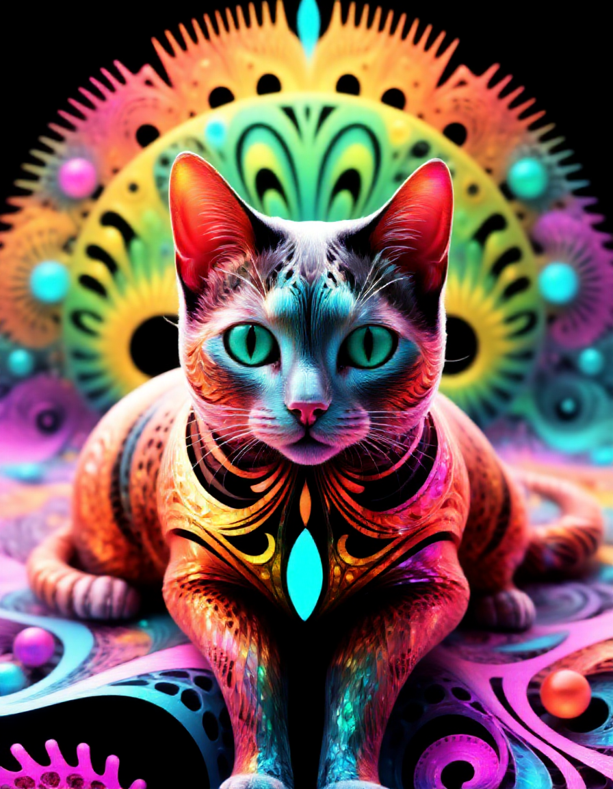 Fractangles amber cat made out of fractangles in a fractal bed <lora:Fractangles_-_Flux:1>âââ