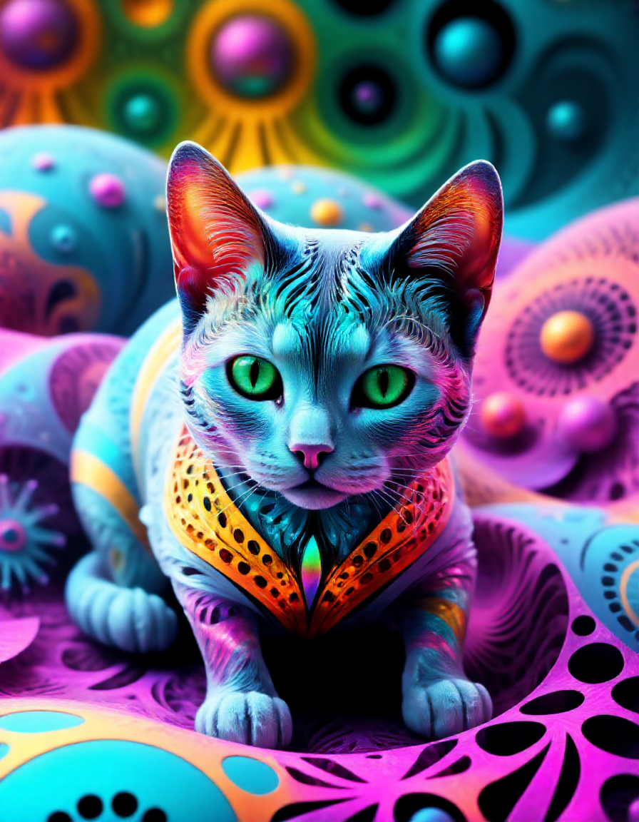 Fractangles turqouise cat made out of fractangles in a fractal bed <lora:Fractangles_-_Flux:1>âââ