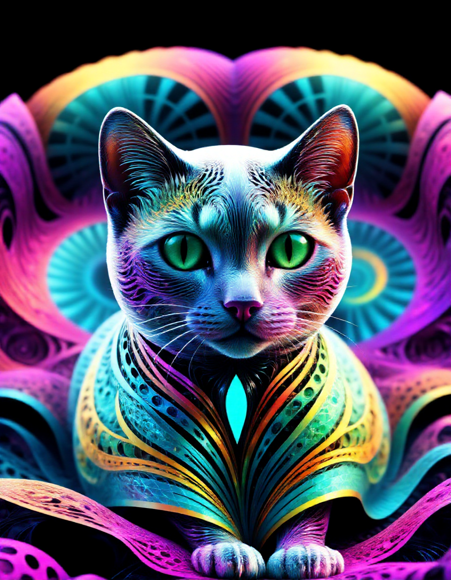 Fractangles Emerald cat made out of fractangles in a fractal bed <lora:Fractangles_-_Flux:1>âââ