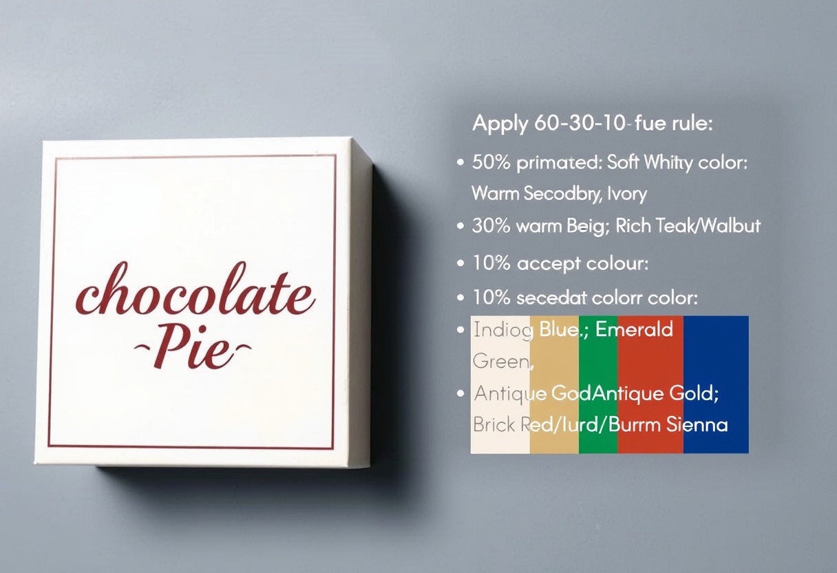 eye-catching, elegant, Chocolate Pie Box, Text:" Chocolate Pie" Apply 60-30-10 rule: 60% primary color: Soft White, Ivory. 30% secondary color: Warm Beige, Rich Teak/Dark Walnut. 10% accent color: Indigo Blue, Emerald Green, Antique Gold, Brick Red/Burnt Sienna.
