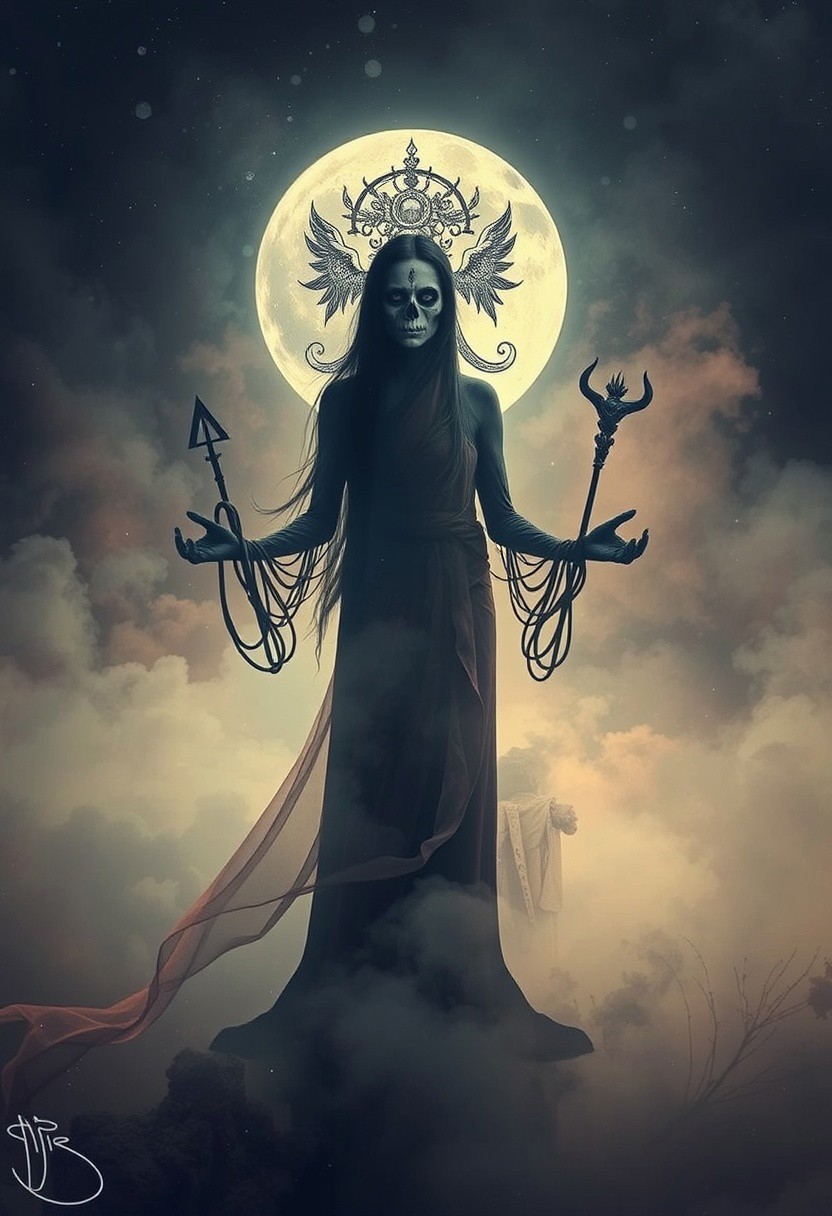 Stories from the Tibetan Book of the dead, surreal fine art photography, emotive storytelling, dreamlike atmosphere, expressive textures, ethereal lighting, introspective themes, bold minimalism, intricate linework, whimsical surrealism, dynamic compositions, layered symbolism, soft yet dramatic contrasts, abstract geometry, narrative depth, contemporary and vintage fusion